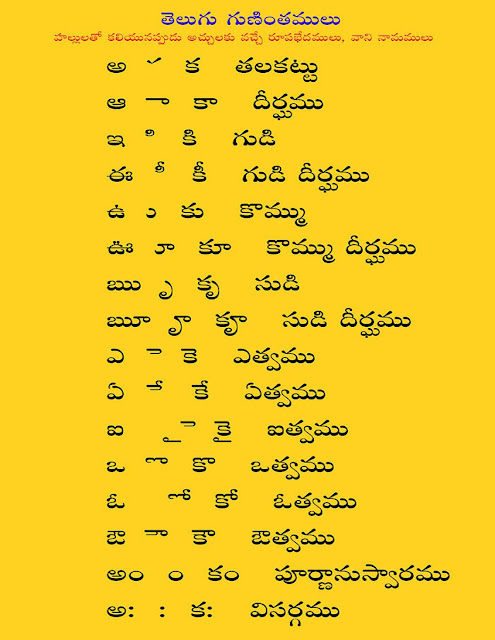 Learn Telugu Language Telugu Gunitapu Gurtulu - Only hallulu are used as vattulu for both acchulu as well as hallulu.
